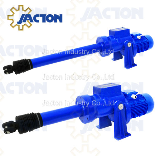 Una vite e una chiocciola trapezoidali sono azionate da un motore elettrico, attraverso un riduttore. La vite di comando converte il movimento rotatorio in movimento lineare. Quando il motore viene attivato, fa ruotare la vite, che muove la chiocciola, la chiocciola si estende e ritrae lo stelo del pistone, che è fissato al carico.